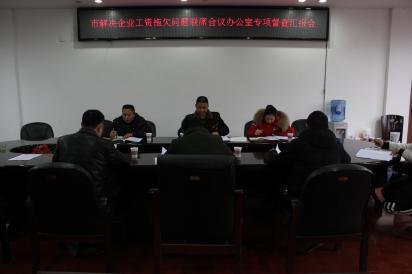 图为:市解决企业工资拖欠问题联席会议办公室第三督查组听取珙县工作汇报